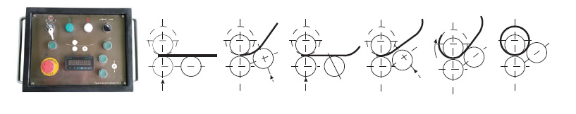 側(cè)輥在線性軌道中運動,使得板材卷板點很接近,實現(xiàn)了高質(zhì)量的預(yù)彎效果,達(dá)到了四輥卷板機(jī)相似的卷制效果