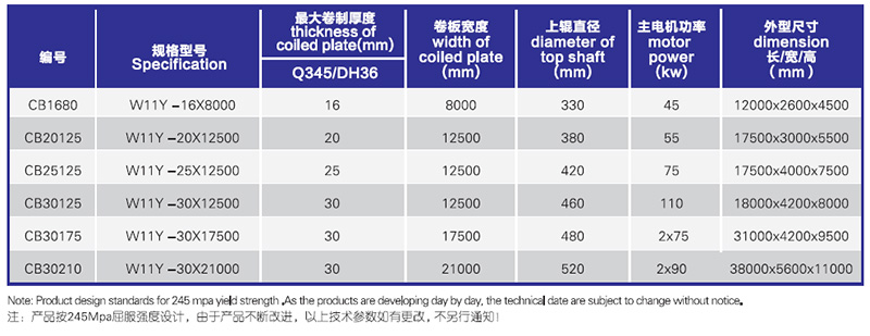 W11Y船舶專用卷板機j結構式為三輥對稱式,是引進國內(nèi)外優(yōu)良技術研發(fā)的一款專用卷板機。性能穩(wěn)定,操作方便。適用于超寬圓弧形零件的卷制。可卷板厚3mm-50mm,板寬28000mm的板材。