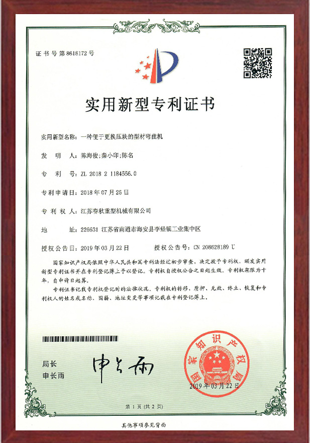 一種便于更換壓塊的型材彎曲機(jī)專利